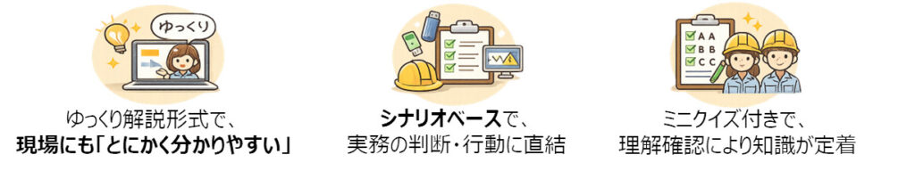 - 朝礼での視聴/トラブル・ヒヤリハット後の再教育